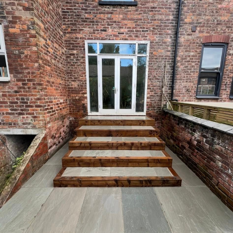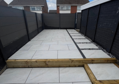 Timber or composite decking, modern patios & paving.